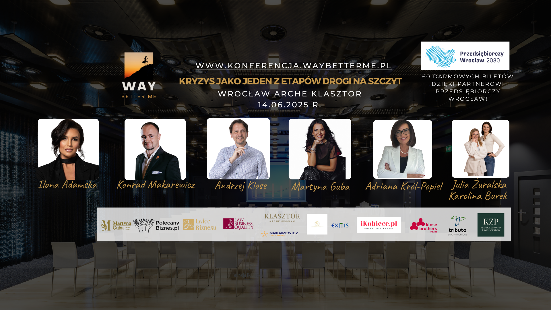 Konferencja odbędzie się 14 czerwca 2025 roku w Hotelu Arche Klasztor Wrocław. Partnerami oraz patronami medialnymi wydarzenia są: Portal iKobiece.pl, Law Business Quality – magazyn ludzi sukcesu. Lwice biznesu – ekskluzywny portal dla przedsiębiorczych kobiet. Klose Brothers Polska – firma, która usprawnia zespoły i managerów na rynkach międzynarodowych. Klinika Zdrowia Psychicznego. Patrycja Konieczna – fotograf, który będzie relacjonował wydarzenie. Kancelaria Prawna – Konrad Makarewicz. Biznes&Rozwój Martyna Guba. Liderzy Biznesu. PolecanyBiznes.pl – portal biznesowy. Tributo – biuro rachunkowe. Exitis – firma projektująca strony internetowe. Hotel Arche Klasztor Wrocław.