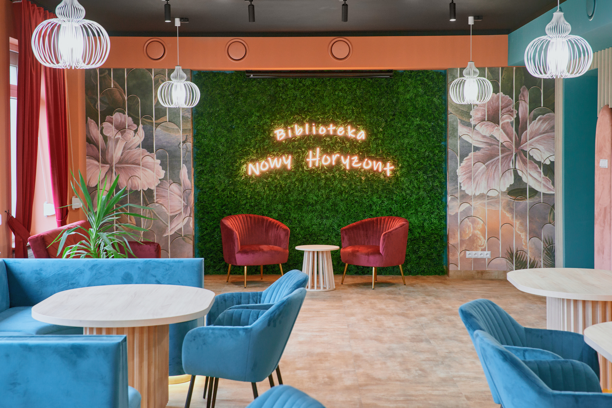 Zakres: projekt aranżacji wnętrz wraz z nadzorem autorskim, opracowanie nazwy projektowanej biblioteki