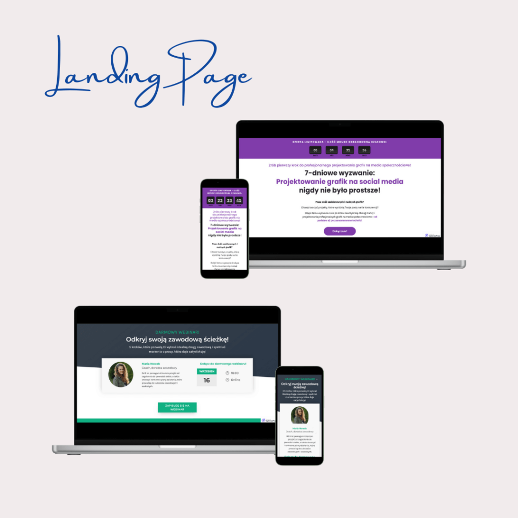 4. Zaprojektuję Twój landing page i stronę sprzedażową Stworzę spersonalizowany Landing Page dla Twojego produktu, usługi, zapisu na webinar lub szkolenie, który przyciągnie uwagę, zachęci do działania i zwiększy konwersję. Będzie zoptymalizowany pod względem SEO, łatwy do nawigacji i w pełni responsywny, a także spójny z identyfikacją wizualną Twojej marki.