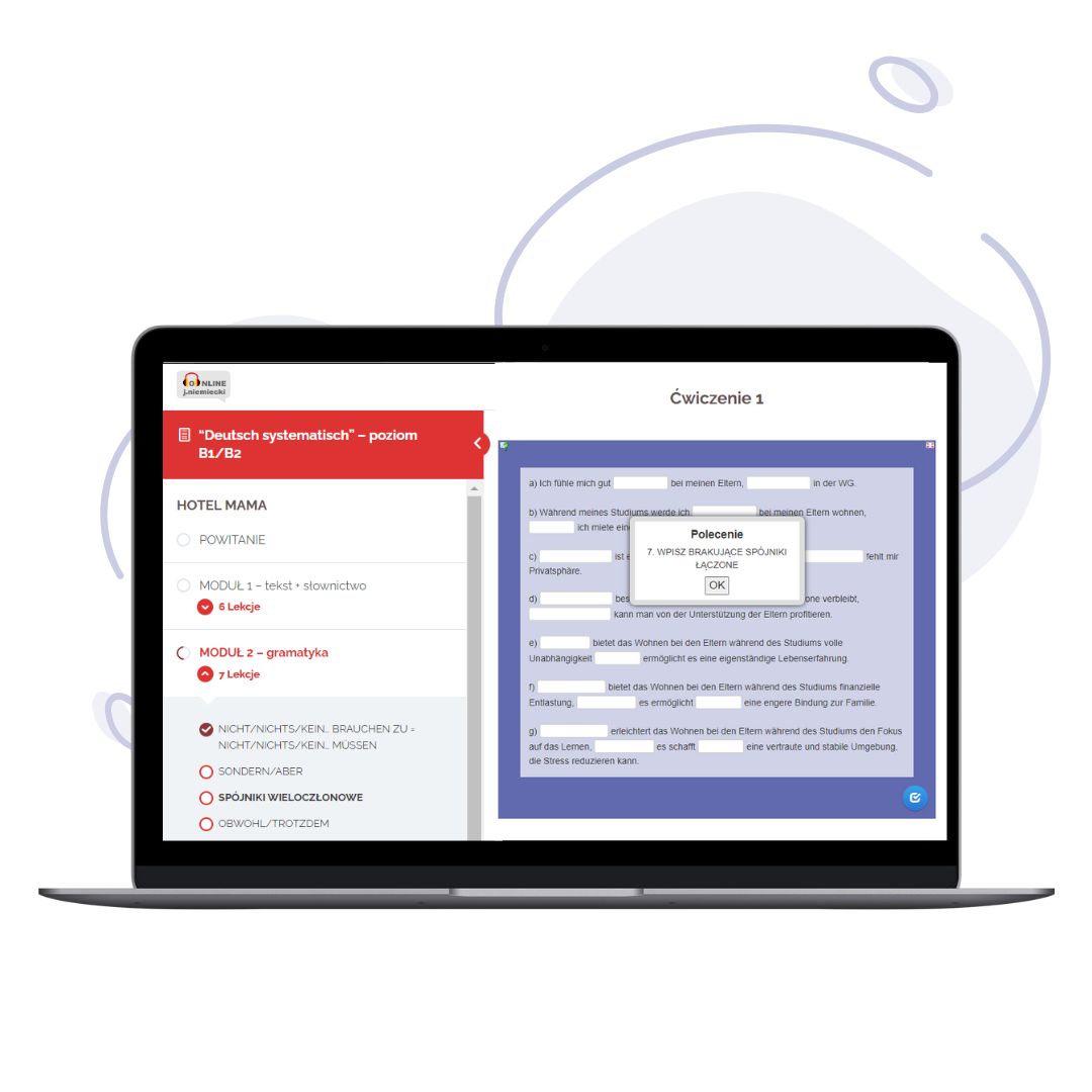Brakuje Ci regularności w nauce języka? A może dotychczasowe materiały były zbyt nudne, chaotyczne lub mało praktyczne? Deutsch Systematisch to kurs online stworzony specjalnie dla osób, które chcą uczyć się efektywnie, ale potrzebują jasnej struktury, motywacji i nowoczesnych narzędzi.